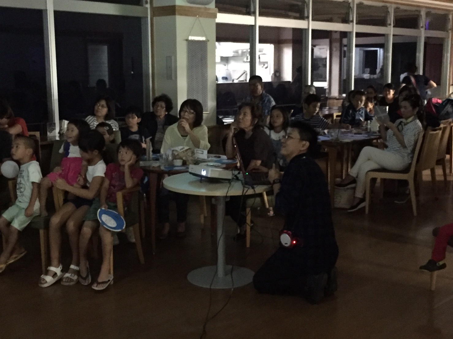 小禄天文クラブの星空案内人の皆様から星の説明を受けながら、天体望遠鏡観察あり、寝っ転がって星空観察ありの